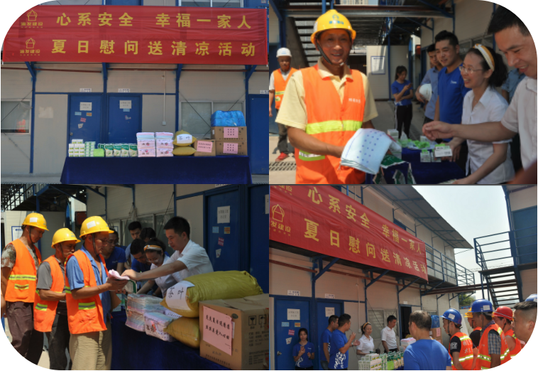 炎炎夏日,骄阳似火,工友们还在在艳阳高照,阳光毒晒的工地上,戴着安全帽紧张的忙碌着……