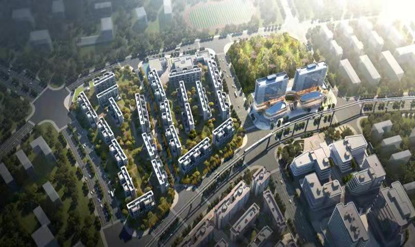 其中北地块主要建筑物为2栋商业楼(1栋13F/-2F,1栋14F/-2F),总建筑高度51m。中地块主要建筑物为11栋住宅楼(8F/-2F),1栋商业楼(2F),1栋幼儿园(3F),1栋社区服务中心(3F),住宅建筑高度26.3m。南地块主要建筑物为11栋住宅楼(8F/-2F),2栋商业楼(1F),总建筑高度26.3m。